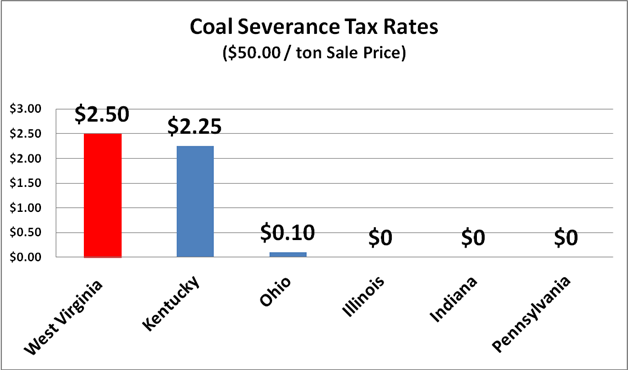 Make no mistake about it, West Virginia’s severance tax rate of 5% has no parallel in any other state. Consequently, coal from neighboring states squeezes out West Virginia coal from regional, dwindling markets.